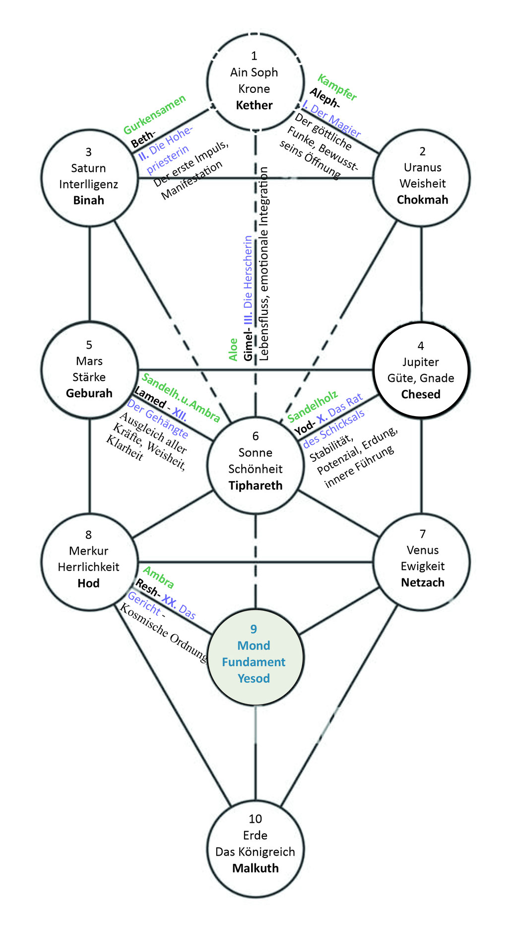 Die kabbalistische Struktur des Namens Gabriel im Lebensbaum